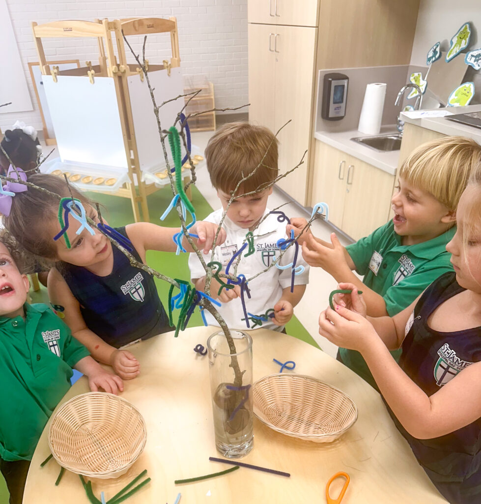 The SPARK Studio is more than just a room—it’s a launchpad for imagination, a studio for big ideas, and a workshop for playful innovation. It’s a place where little hands make big discoveries and where creativity truly takes flight. “The SPARK Studio gives our youngest learners a place to explore their natural curiosity and make sense of the world around them at their own pace. They are gaining the competence, readiness, and confidence to succeed throughout their years at St. James and beyond,” shares Julie Mendes, Director of Early Childhood.